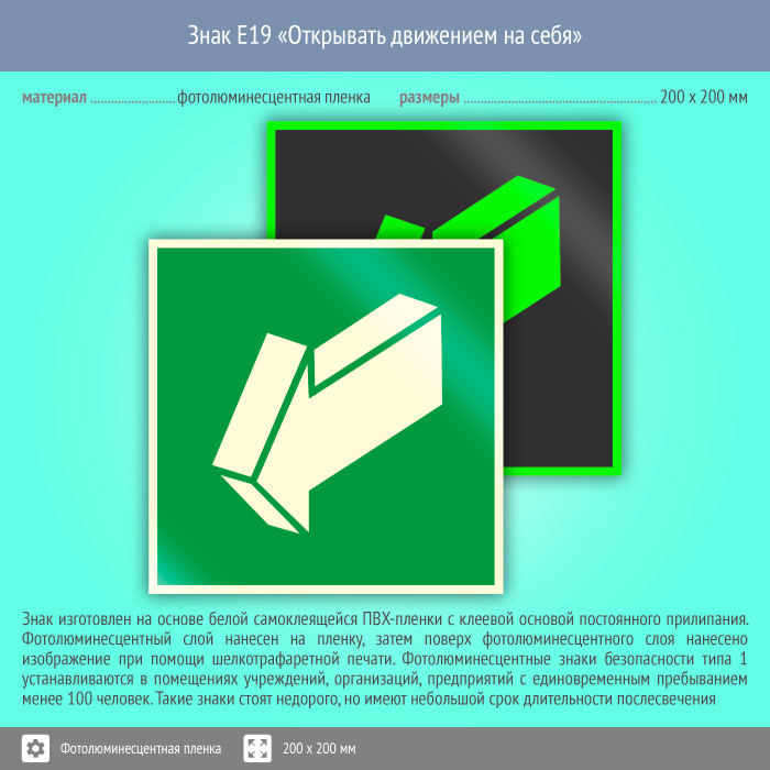 Знак E19 «Открывать движением на себя» (фотолюминесцентная пленка, 200х200 мм) в Твери купить