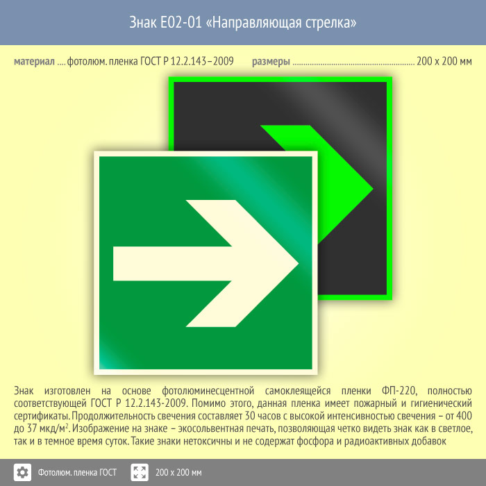 Знак E02-01 «Направляющая стрелка» (фотолюминесцентная пленка ГОСТ 34428-2018, 200х200 мм) в Твери купить