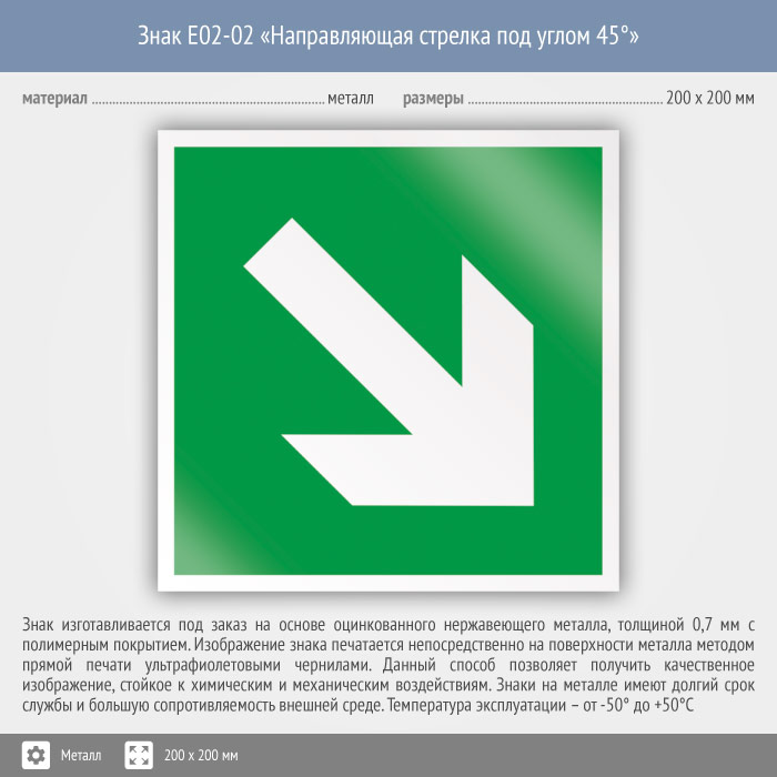 Знак E02-02 «Направляющая стрелка под углом 45°» (металл, 200х200 мм) в Твери купить