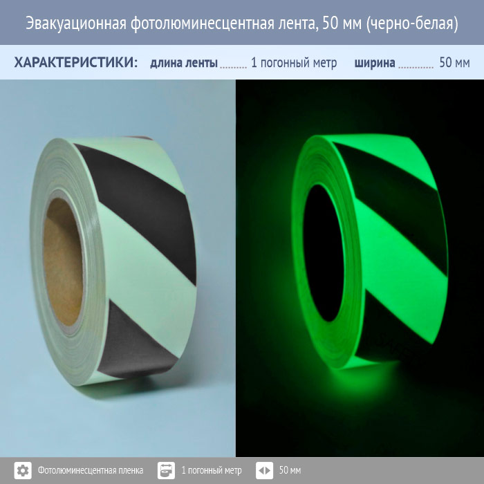 Эвакуационная фотолюминесцентная лента, 50 мм (черно-белая) в Твери купить