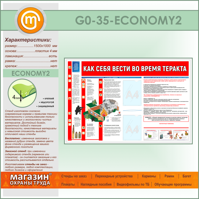 Стенд «Как себя вести во время теракта» c 2 карманами (GO-35-ECONOMY2) в Твери купить