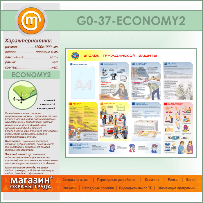 Стенд «Уголок гражданской защиты» с карманом (GO-37-ECONOMY2) в Твери купить
