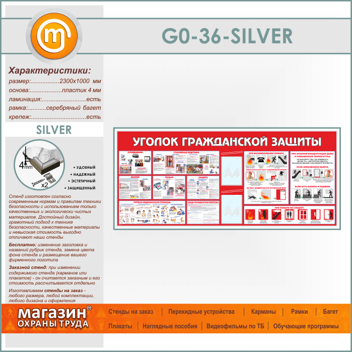 Стенд «Уголок гражданской защиты» c 2 карманами (GO-36-SILVER) в Твери купить
