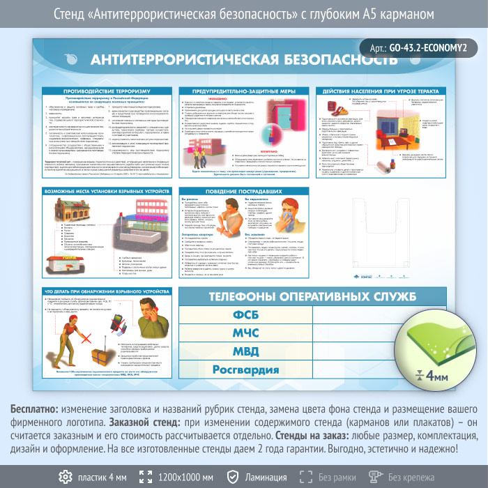 Стенд «Антитеррористическая безопасность» с глубоким А5 карманом (GO-43.2-ECONOMY2) в Твери купить