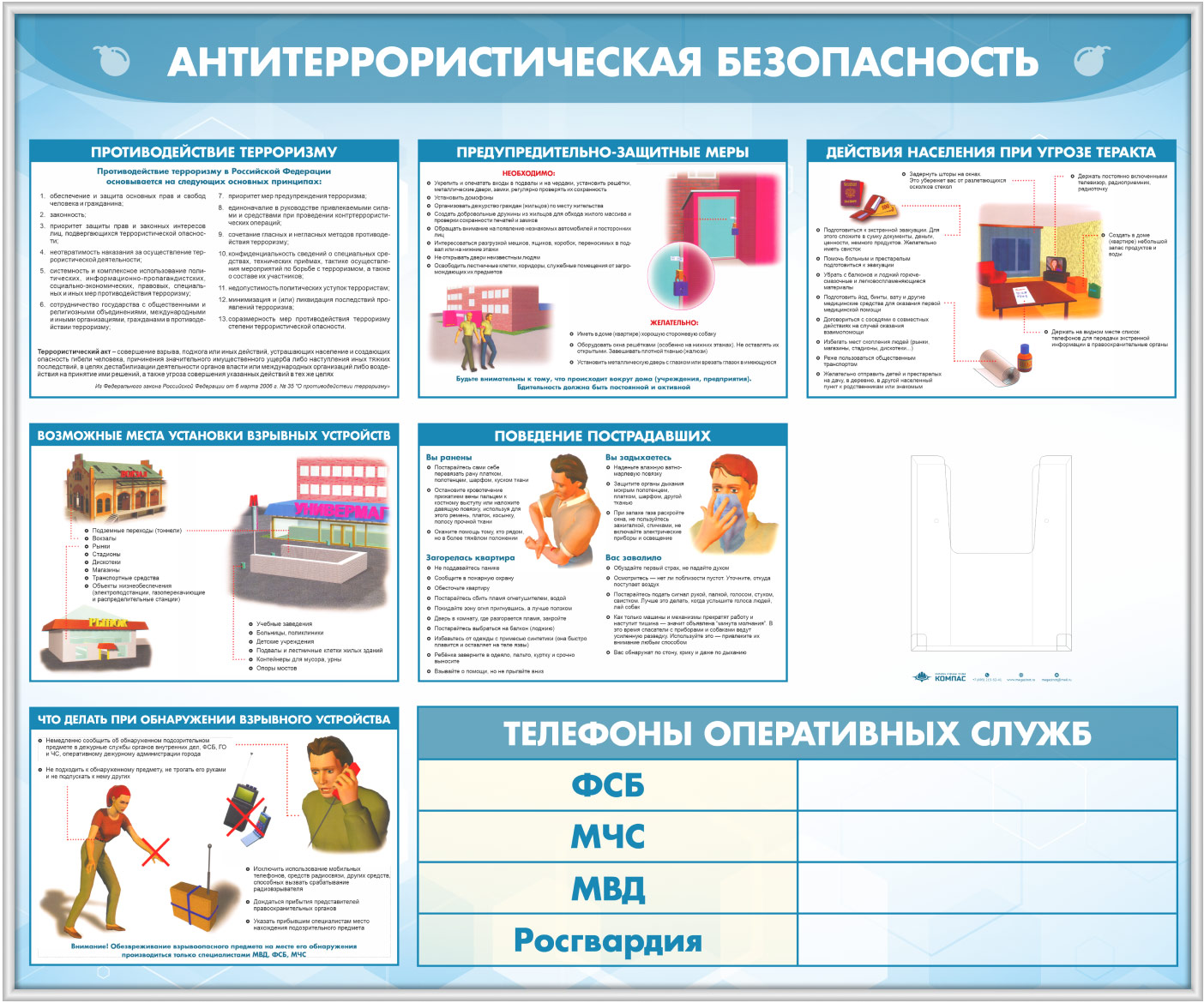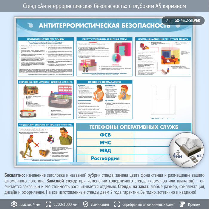 Стенд «Антитеррористическая безопасность» с глубоким А5 карманом (GO-43.2-SILVER) в Твери купить