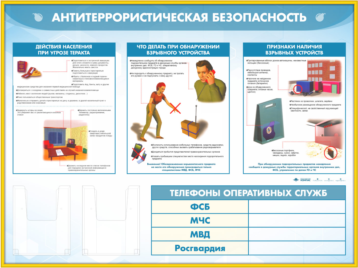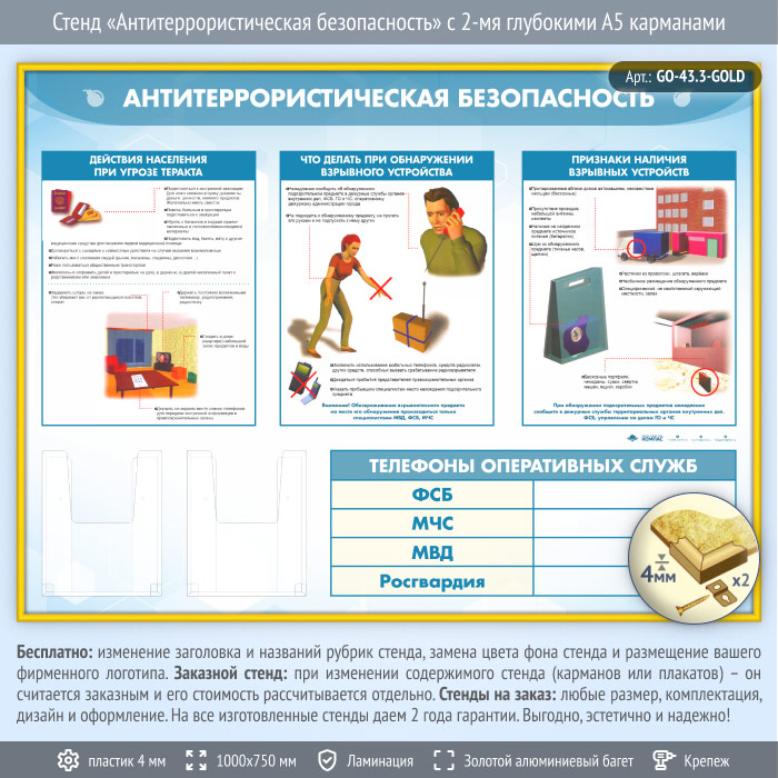 Стенд «Антитеррористическая безопасность» с 2-мя глубокими А5 карманами (GO-43.3-GOLD) в Твери купить
