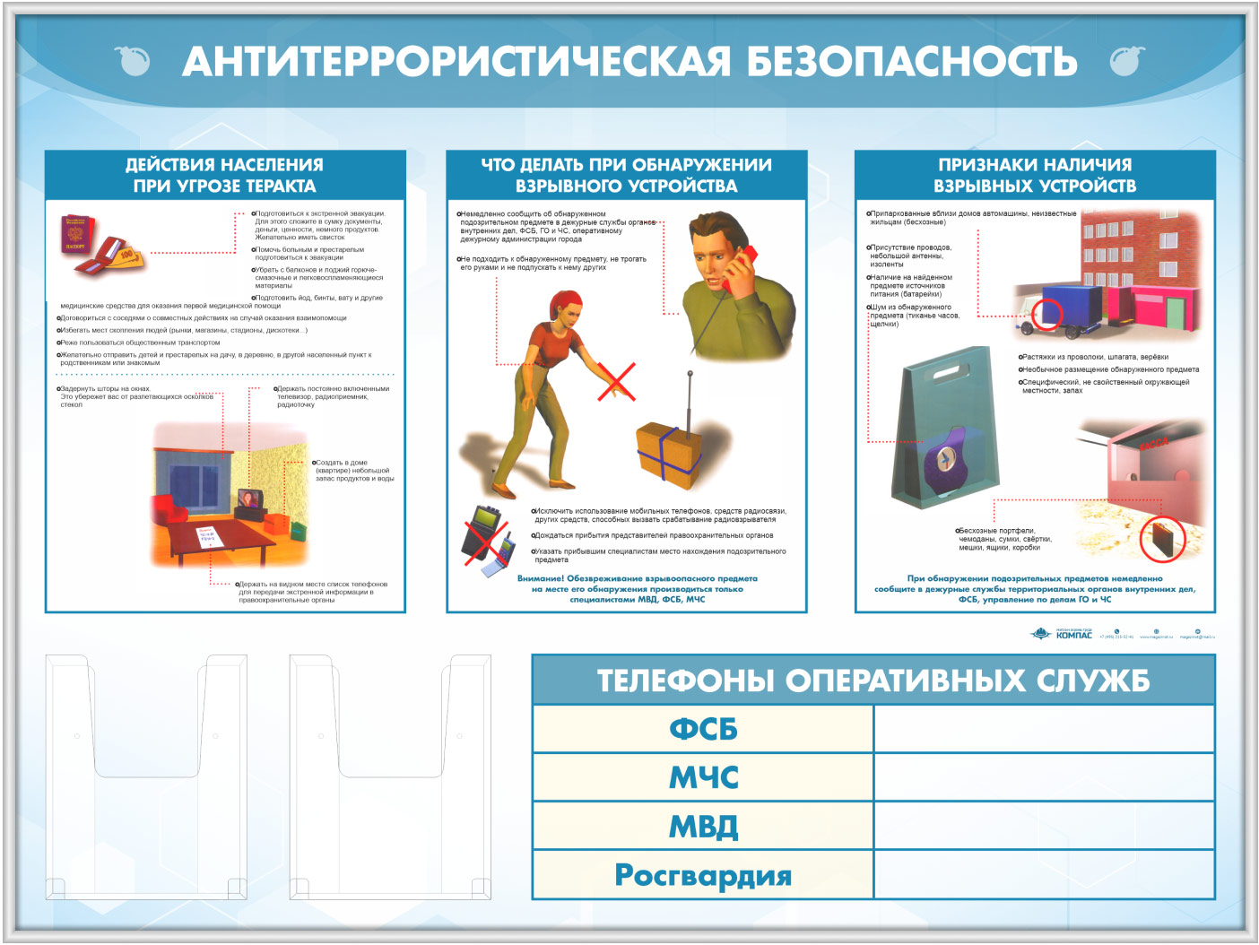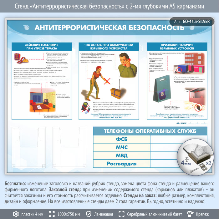Стенд «Антитеррористическая безопасность» с 2-мя глубокими А5 карманами (GO-43.3-SILVER) в Твери купить