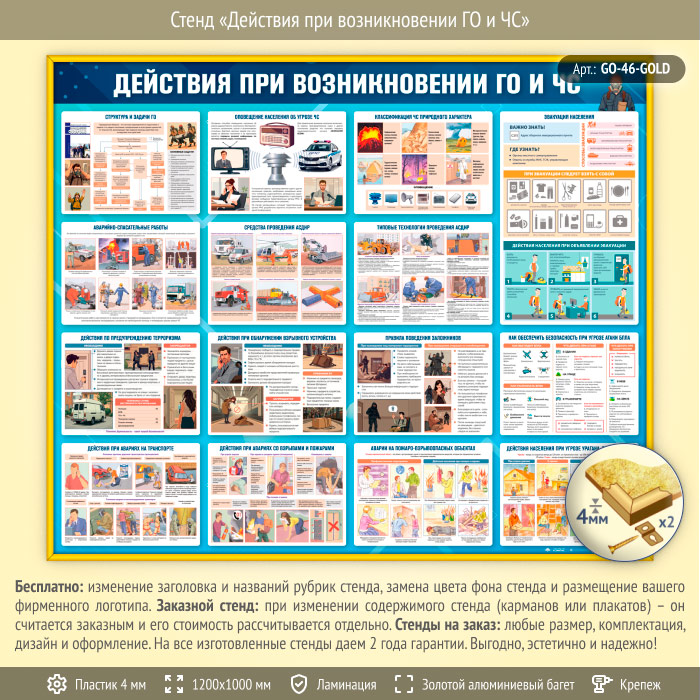 Стенд «Действия при возникновении ГО и ЧС» (GO-46-GOLD) в Твери купить