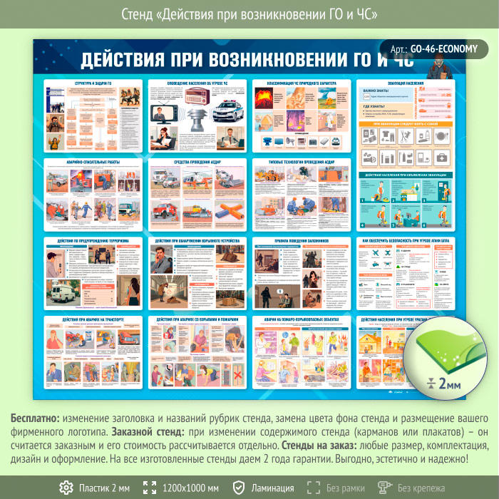 Стенд «Действия при возникновении ГО и ЧС» (GO-46-ECONOMY) в Твери купить