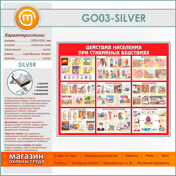 Стенд «Действия населения при стихийных бедствиях» (GO-03-SILVER) в Твери купить