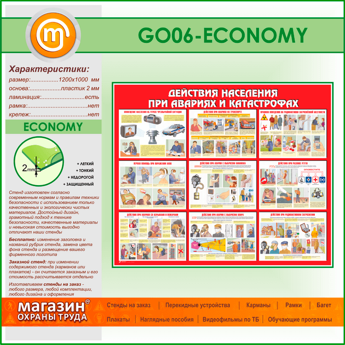 Стенд «Действия населения при авариях и катастрофах» (GO-06-ECONOMY) в Твери купить