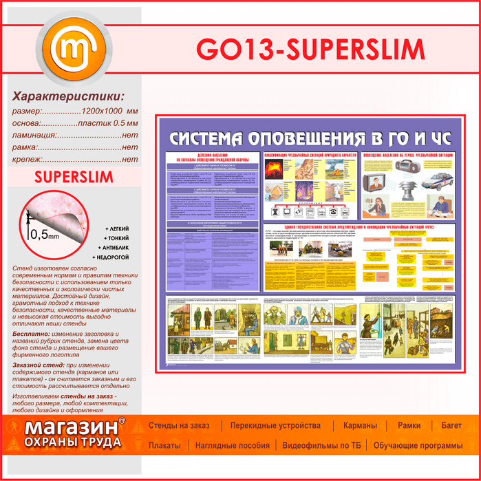 Стенд «Система оповещения в ГО и ЧС» (GO-13-SUPERSLIM) в Твери купить