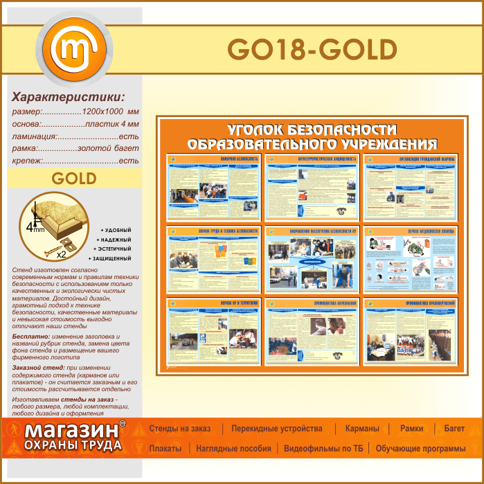 Стенд «Уголок безопасности образовательного учреждения» (GO-18-GOLD) в Твери купить