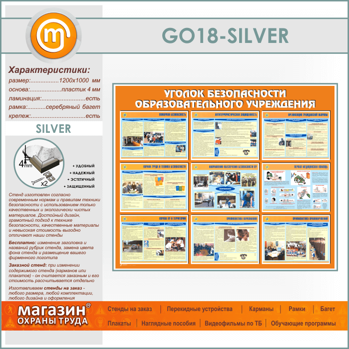 Стенд «Уголок безопасности образовательного учреждения» (GO-18-SILVER) в Твери купить