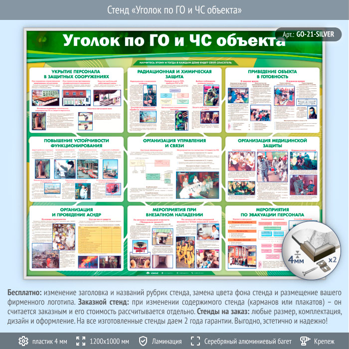 Стенд «Уголок по ГО и ЧС объекта» (GO-21-SILVER) в Твери купить