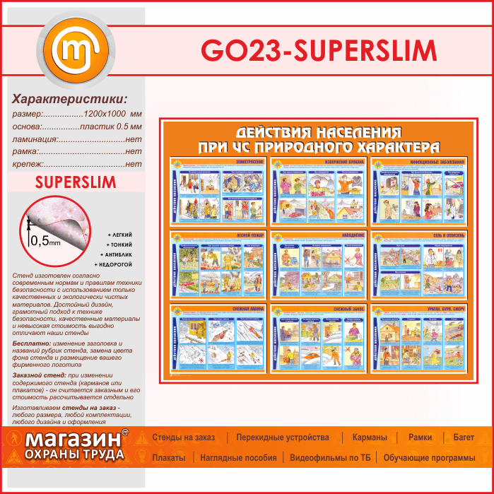 Стенд «Действия населения при ЧС природного характера» (GO-23-SUPERSLIM) в Твери купить