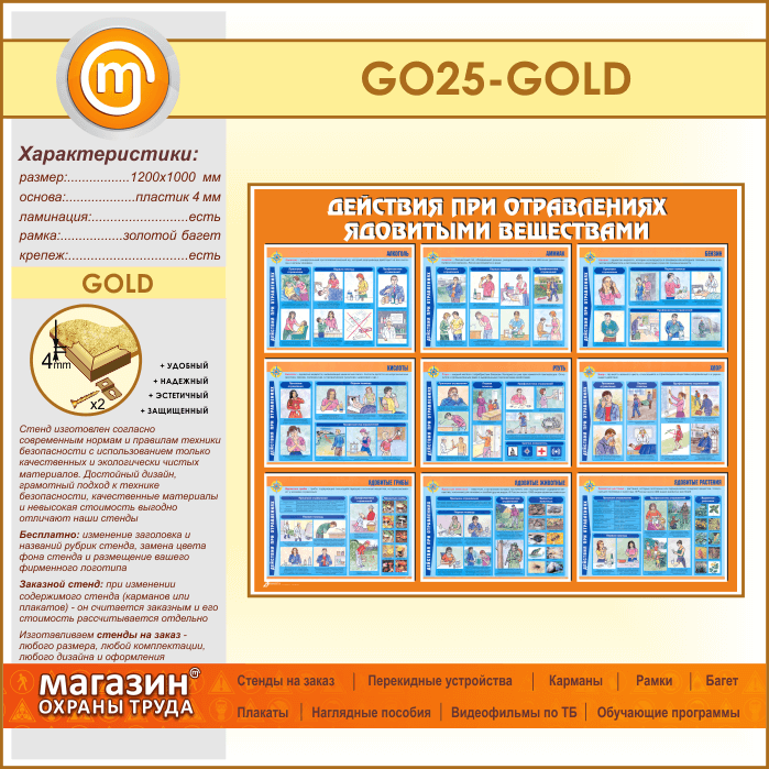 Стенд «Действия при отравлении ядовитыми веществами» (GO-25-GOLD) в Твери купить
