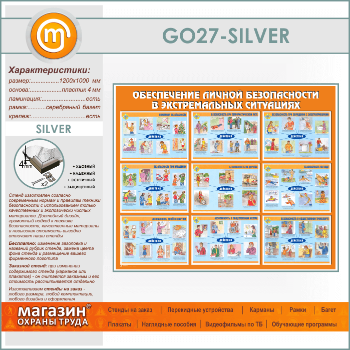 Стенд «Обеспечение личной безопасности в экстремальных ситуациях» (GO-27-SILVER) в Твери купить