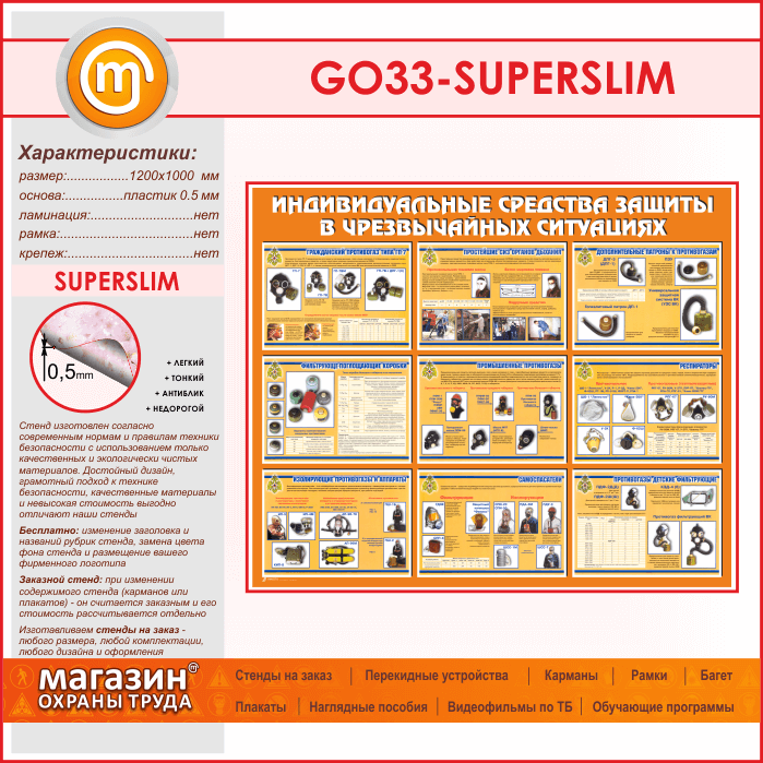 Стенд «Индивидуальные средства защиты в чрезвычайных ситуациях» (GO-33-SUPERSLIM) в Твери купить