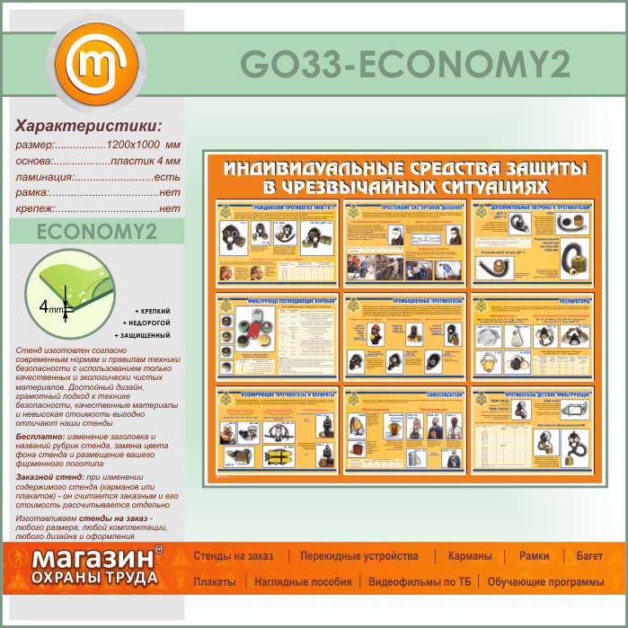 Стенд «Индивидуальные средства защиты в чрезвычайных ситуациях» (GO-33-ECONOMY2) в Твери купить