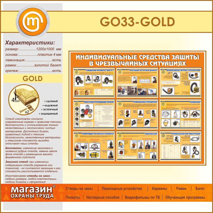 Стенд «Индивидуальные средства защиты в чрезвычайных ситуациях» (GO-33-GOLD) в Твери купить