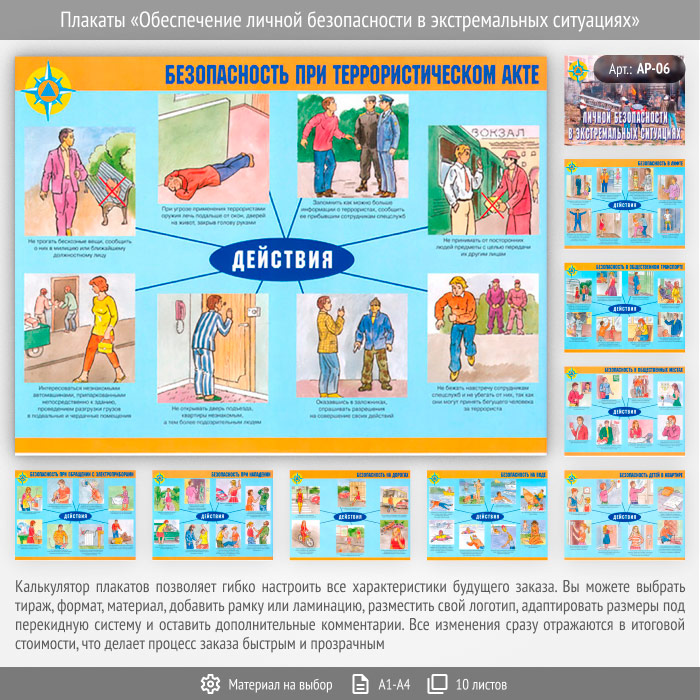 Плакаты «Обеспечение личной безопасности в экстремальных ситуациях» (АР-06, 10 листов) в Твери купить