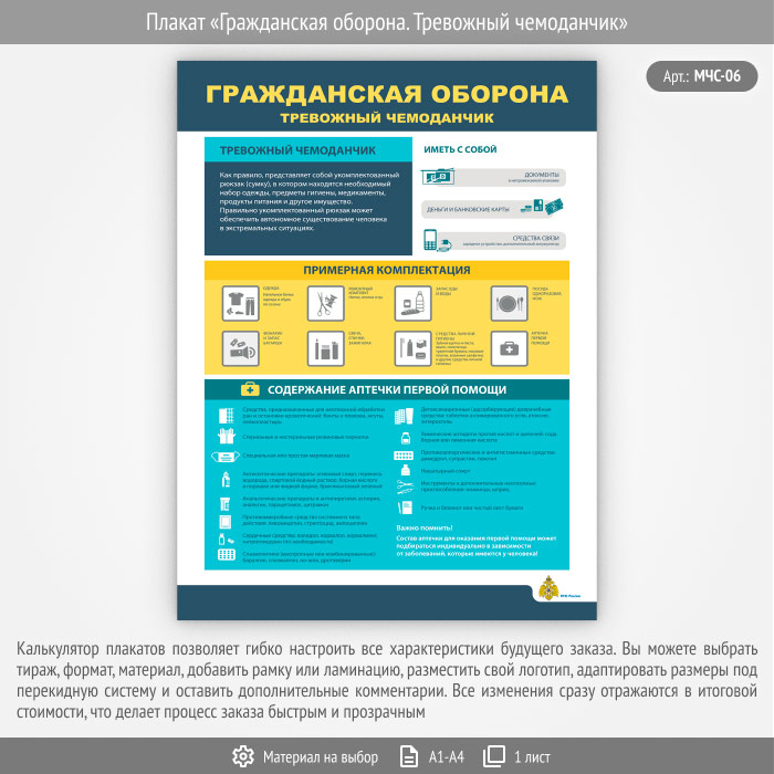 Плакат «Гражданская оборона. Тревожный чемоданчик» (МЧС-06, 1 лист) в Твери купить