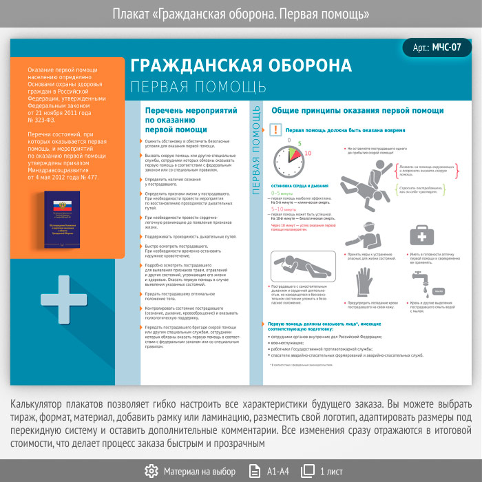 Плакат «Гражданская оборона. Первая помощь» (МЧС-07, 1 лист) в Твери купить