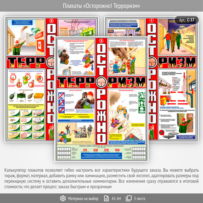 Плакаты «Осторожно! Терроризм» (С-37, 3 листа) в Твери купить