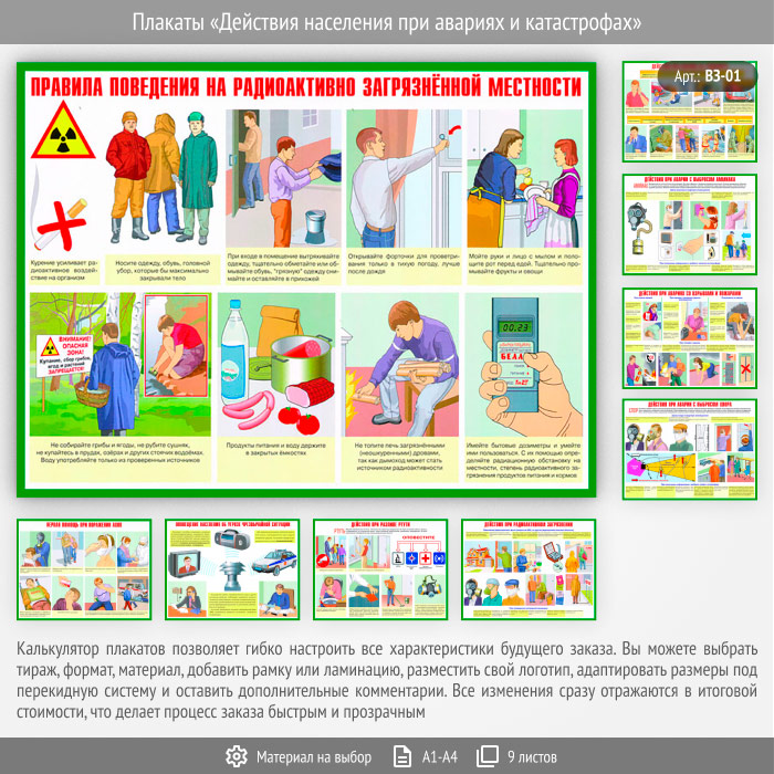 Плакаты «Действия населения при авариях и катастрофах» (ВЗ-01, 9 листов) в Твери купить