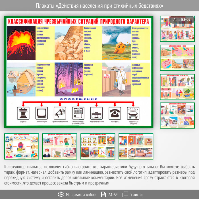 Плакаты «Действия населения при стихийных бедствиях» (ВЗ-02, 9 листов) в Твери купить