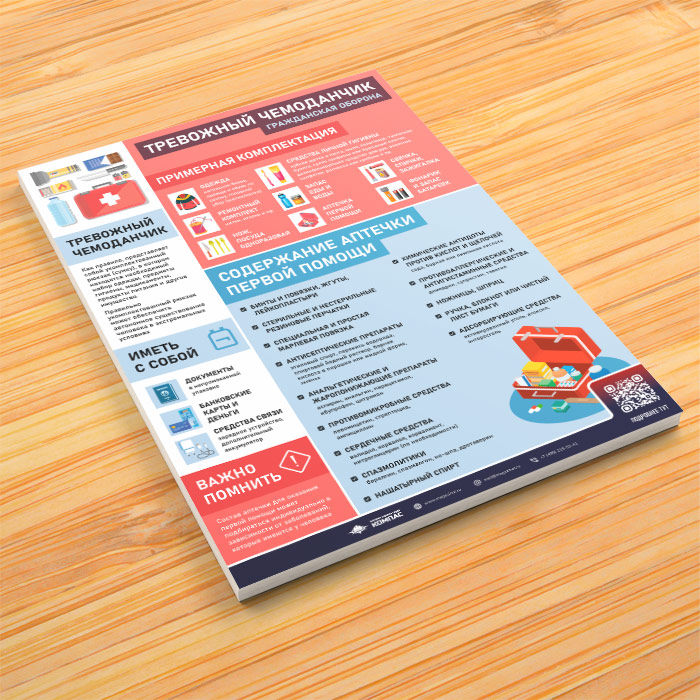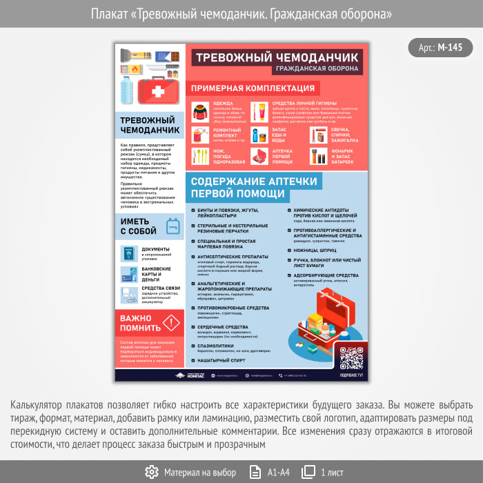 Плакат «Тревожный чемоданчик. Гражданская оборона» с QR (М-145, 1 лист) в Твери купить