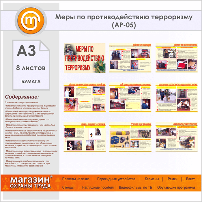 Плакаты «Меры по противодействию терроризму» (АР-05, бумага, А3, 8 листов) в Твери купить