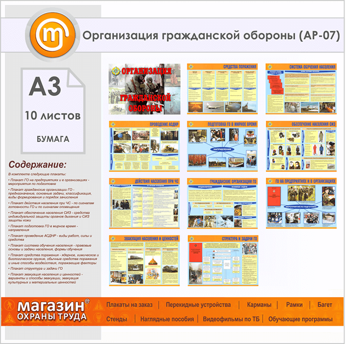 Плакаты «Организация гражданской обороны» (АР-07, бумага, А3, 10 листов) в Твери купить