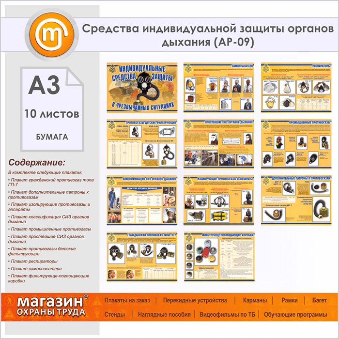 Плакаты «Средства индивидуальной защиты органов дыхания» (АР-09, бумага, А3, 10 листов) в Твери купить