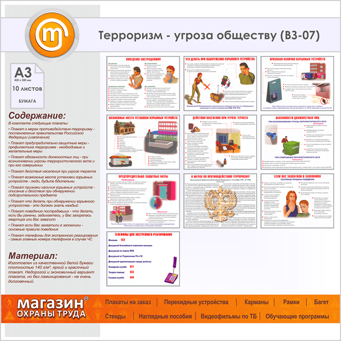 Плакаты «Терроризм - угроза обществу» (ВЗ-07, бумага, А3, 10 листов) в Твери купить