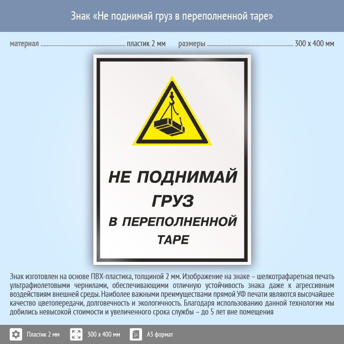 Знак «Не поднимай груз в переполненной таре», КЗ-26 (пластик, 300х400 мм) в Твери купить