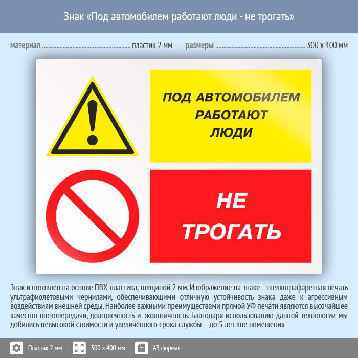 Знак «Под автомобилем работают люди - не трогать», КЗ-66 (пластик, 400х300 мм) в Твери купить
