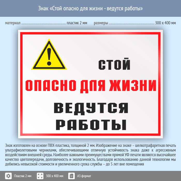 Знак «Стой опасно для жизни - ведутся работы», КЗ-86 (пластик, 400х300 мм) в Твери купить