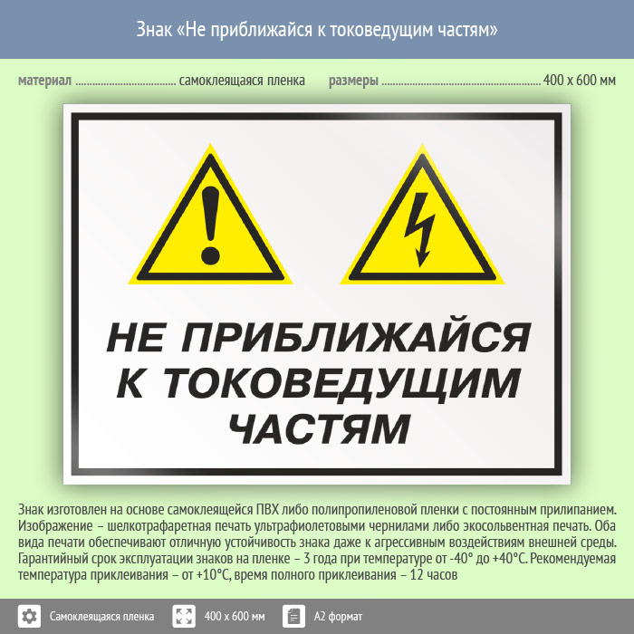 Знак «Не приближайся к токоведущим частям», КЗ-29 (пленка, 600х400 мм) в Твери купить