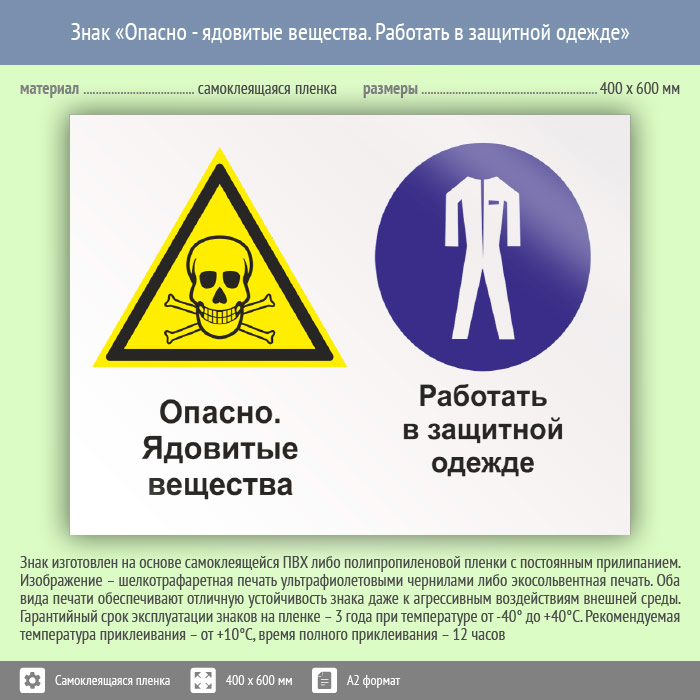 Знак «Опасно - ядовитые вещества. Работать в защитной одежде», КЗ-42 (пленка, 600х400 мм) в Твери купить