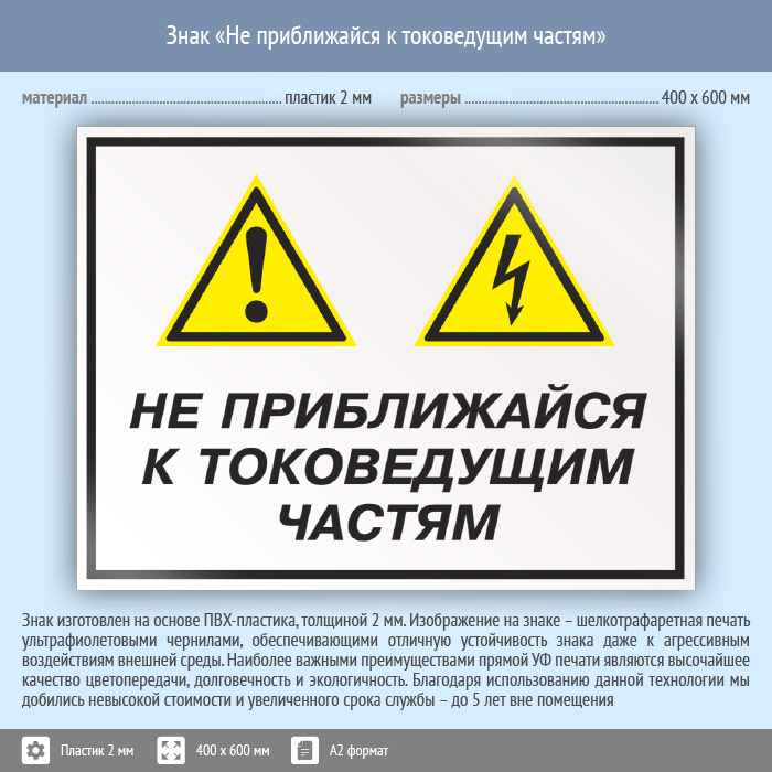 Знак «Не приближайся к токоведущим частям», КЗ-29 (пластик, 600х400 мм) в Твери купить
