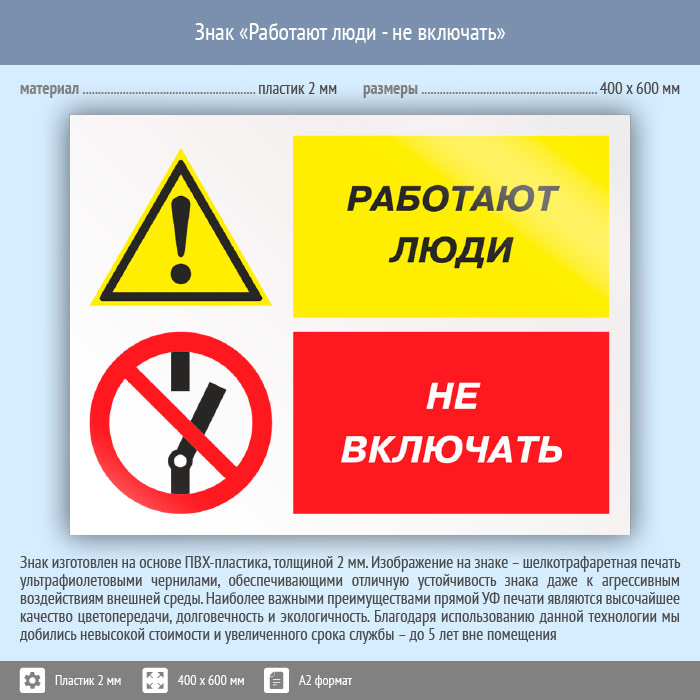 Знак «Работают люди - не включать», КЗ-83 (пластик, 600х400 мм) в Твери купить