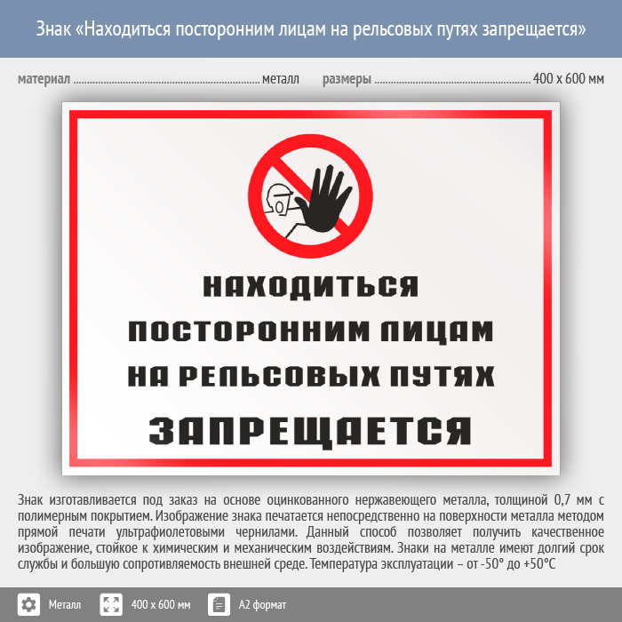 Знак «Находиться посторонним лицам на рельсовых путях запрещается», КЗ-25 (металл, 600х400 мм) в Твери купить