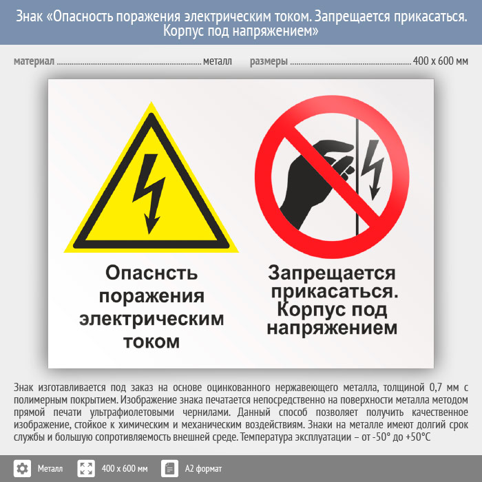 Знак «Опасность поражения электрическим током. Запрещается прикасаться. Корпус под напряжением», КЗ-47 (металл, 600х400 мм) в Твери купить
