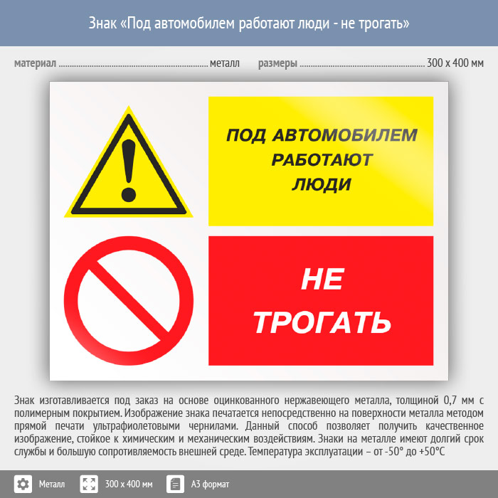 Знак «Под автомобилем работают люди - не трогать», КЗ-66 (металл, 400х300 мм) в Твери купить