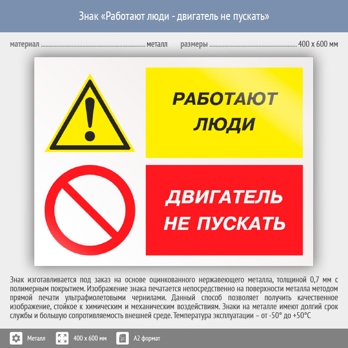 Знак «Работают люди - двигатель не пускать», КЗ-82 (металл, 600х400 мм) в Твери купить