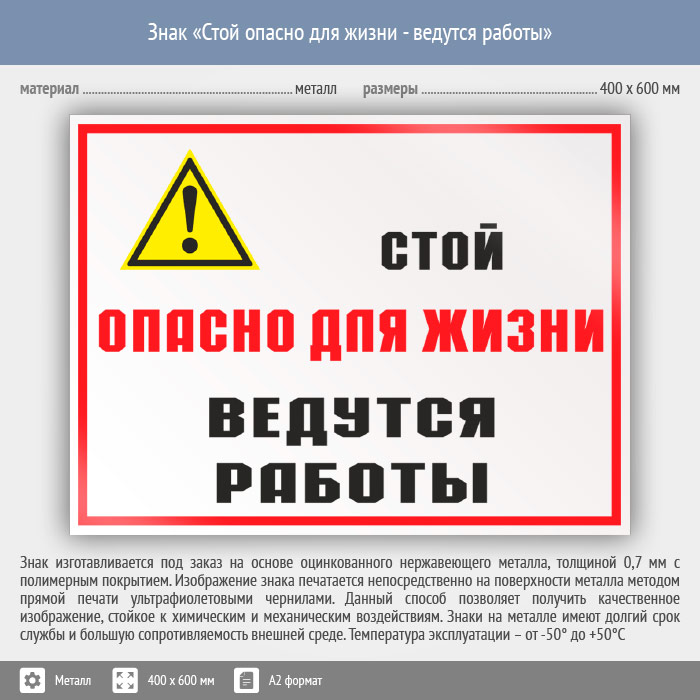 Знак «Стой опасно для жизни - ведутся работы», КЗ-86 (металл, 600х400 мм) в Твери купить