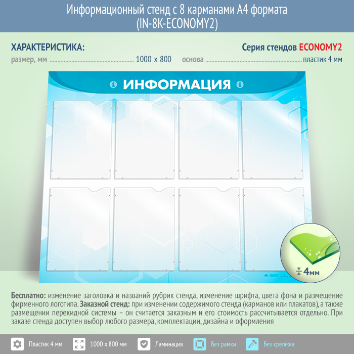Информационный стенд с 8 карманами А4 формата (IN-8K-ECONOMY2) в Твери купить