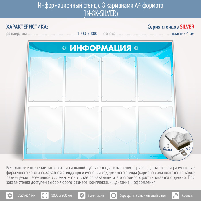 Информационный стенд с 8 карманами А4 формата (IN-8K-SILVER) в Твери купить